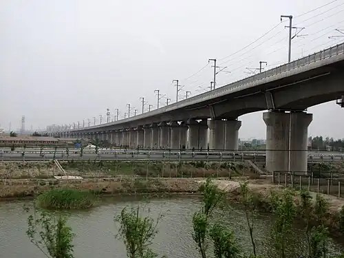 Die Strecke verläuft parallel zur Trasse der neuen Schnellfahrstrecke Peking–Shanghai.