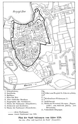 Als Stadtburg befand sich die Anlage am Südrand der Altstadt, der Burgberg ragt etwa 15 bis 20 Meter über den Spiegel des Burgsees auf. Die Burg schützte den Zugang zur Stadt und zur Salzunger Saline.[1]