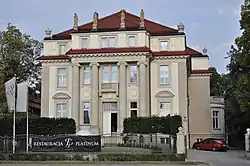 | Villa Schoeller, Breslau | Die in Breslau tätigen Nachkommen von Leopold besaßen bis zur Vertreibung 1945 im Ortsteil Borek (Kleinburg) die 1905 erbaute und nach ihnen benannte Villa Schoeller.[7] Diese immer noch bestehende Villa dient seit August 2010 und nach mehrmaligem Umbau als 5-Sterne-Hotel unter dem heutigen Namen Platinum Palace. | ![]() weitere Bilder |