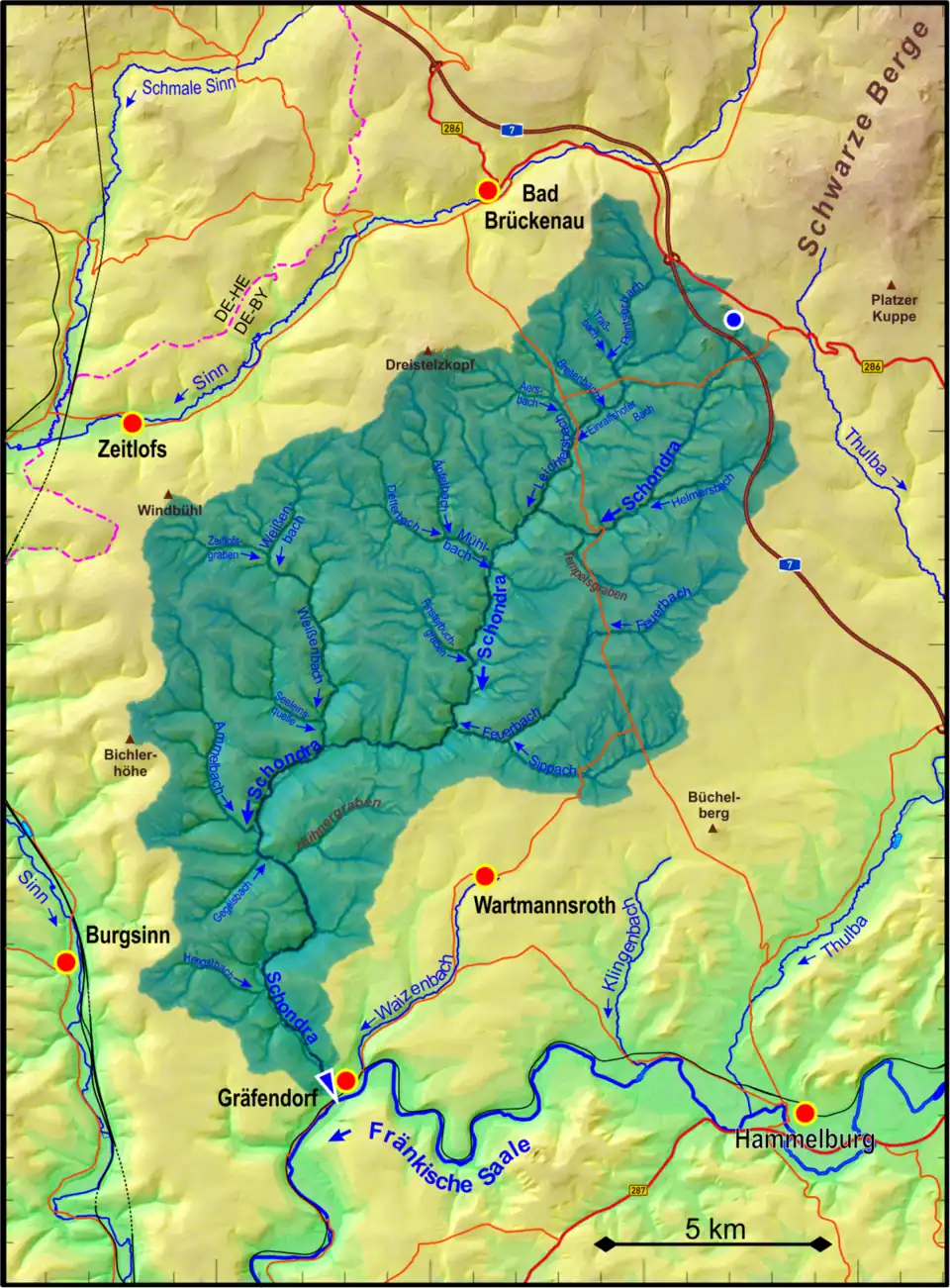 Die Schondra ist ein gut einunddreißig Kilometer langer, rechter und nördlicher Zufluss der Fränkischen Saale im bayerischen Unterfranken.