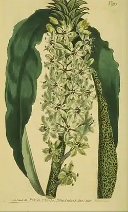 - ↑ a b c Rafaël Govaerts (2001): World Checklist of Seed Plants Database in ACCESS E-F: 1-50919. Eucomis. In: POWO = Plants of the World Online von Board of Trustees of the Royal Botanic Gardens, Kew: Kew Science, abgerufen am 4. September 2016.