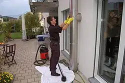 Aufgrund seiner Erfahrung und seiner Ortskenntnisse ist der Schornsteinfeger ein wichtiger Ansprechpartner für die Feuerwehr. Daher wird er bei der Bekämpfung von Schornsteinbränden oft von der zuständigen Feuerwehr hinzugezogen. In Deutschland war diese Aufgabe im Schornsteinfegergesetz verankert und gehörte zu den unentgeltlichen Pflichten der Schornsteinfeger (§ 13 Abs. 1 Nr. 7 SchfG).[22] Nach dem neuen Schornsteinfeger-Handwerksgesetz leistet jeder bevollmächtigte Bezirksschornsteinfeger weiterhin auf Anforderung der für den örtlichen Brandschutz zuständigen Behörde Hilfe bei der Brandbekämpfung in seinem Bezirk (SchfHwG § 16 Absatz 2).