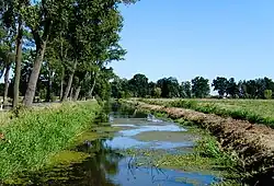 Zusammenfluss von Hauptschradengraben und Großthiemig-Grödener Binnengraben am Schöpfwerk in Elsterwerda