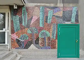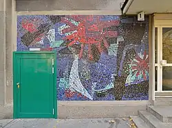 An einer der Wände des Gebäudes befand sich ein großformatiges keramisches Mosaikbild Schutzmantelmadonna aus dem Jahre 1958 von Hedwig Wagner.