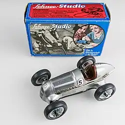 In den sechziger Jahren fand ein breiter Paradigmenwechsel innerhalb der Spielzeugindustrie statt und das bis dahin dominierende Blechspielzeug wurde durch Plastik- und Spritzgussmodelle abgelöst. Viele der bekannten Nürnberger Hersteller (Distler, Günthermann) mussten aufgeben und Schuco wurde 1976 an die britische DCM (Dunbee-Combex-Marx)-Gruppe verkauft. Als dieses Unternehmen 1980 insolvent wurde, erwarb Gama-Mangold die Rechte und verlegte den Sitz des Unternehmens nach Fürth. Schuco stellte nun Replikate seiner alten Blechspielzeuge für den Sammlermarkt her. Der Studio-Rennwagen und die Oldtimer-Serie wurden in das Programm aufgenommen, um an die früheren Erfolge anzuknüpfen.