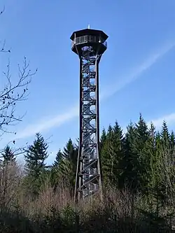 Auf dem Schriesheimer Kopf steht der 41 m hohe Teltschikturm, von dem sich ein sehr guter Rundblick in den Odenwald bietet. Der Turm wurde auf Initiative von Walter Teltschik durch Spenden finanziert und nach Entwürfen seines Vetters Robert Teltschik 2001 errichtet.[2] Er ist eine überdachte Holzkonstruktion mit Stahlwendeltreppe. Unweit des Turms befindet sich in Erinnerung an den Mäzen und Spender seit 2016 ein Gedenkstein.