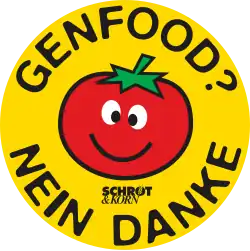 Im Rahmen der Diskussion zur Änderung des Gentechnik-Gesetzes begann Schrot & Korn 2004 mit umfangreichen Info-Aktivitäten zu diesem Thema. Neben zwei Sonderteilen im Heft gründete der Verlag das Internetportal genfoodneindanke.de, um Verbraucher über Grüne Gentechnik zu informieren. Parallel unterstützt der Verlag den Informationsdienst Gentechnik, Aktionen der Verbände oder der Bauern. Klammer für alle diese Aktivitäten war das Logo „Genfood-Nein-Danke!“, eine abgeänderte Variante des Anti-Atomkraft-Logos der 1970er-Jahre.[6]