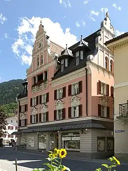 - Ehemaliges Geschäftshaus Bahnhofstraße 28, Schruns, heute ein Tourismusbüro.