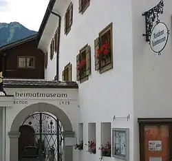 - Montafoner Heimatmuseum Schruns: Im Jahr 1906 begann eine Gruppe heimatkundlich interessierter Einheimischer, im Montafon selten vorkommende Tiere, Pflanzen und Mineralien zu sammeln und in der Folge auch auszustellen. Unter der Leitung des Schrunser Schulleiters Johann Wiederin wurde die mittlerweile umfangreiche Sammlung durch alte Möbel, Bilder und Kunstwerke ergänzt. Im Frühmesshaus in der Silvrettastraße fand man eine geeignete Stätte für die Sammlung, und so konnte am 12. Juni 1921 das „Montafoner Heimatschutzmuseum“ in Schruns feierlich eröffnet werden. Im Jahr 1978 übersiedelte das Museum an den Kirchplatz in Schruns in ein altes Montafoner Ständehaus (im Giebel bez. 1710; rätoromanische, Bau; ehemals Sitz der Bergrichter), das renoviert und durch einen Neubau ergänzt wurde. Durch diese optimale Kombination bietet sich in den beiden unterschiedlich ausgestatteten Gebäuden die Möglichkeit, das Ausstellungsgut den gegenwärtigen Erkenntnissen gemäß optimal zu präsentieren. Es beherbergt Kulturgut aus dem ganzen Tal und informiert über die Lebensweise der Montafoner. Während im Neubau Vitrinen eingerichtet sind, wird im alten Gebäude ein Rundgang durch die Wohnkultur und Arbeitswelt des Montafons geboten: bäuerliche Gerätesammlung, volkskundliche und kunstgeschichtliche Bestände, Kunstwerke der Gotik und des Barock (u. a. ehem. Hochaltarfiguren der Pfarrkirche Schruns von Josef Klemens Witwer aus Imst, um 1790). Ein kleines Zimmer ist als Schulklasse eingerichtet, mit dem obligaten Lehrerpult, dem Harmonium und den feststehenden Holzbänken. Hier wurden acht Schulstufen gleichzeitig unterrichtet. Das ebenso hier untergebrachte „Montafon-Archiv“ von Josef Zurkirchen ist nach Voranmeldung für Studienzwecke zugänglich. Der Heimatschutzverein Montafon ist Träger des Heimatmuseums und der Eigentümer der Sammlung. Im November 2011 erfolge in Schruns eine Bürgerbefragung zu einem geplanten Museums-Neubau, und der Vorschlag der Architekten Marte/Marte in reduzierter Betonweise wurde hier durch die Bevölkerung abgelehnt.[16]