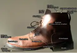 Je nach Anwendungszweck, Kulturkreis und Zeitepoche kommen unterschiedliche Schuhformen vor, die sich sowohl hinsichtlich ihrer Optik, als auch der Form und der verwendeten Materialien voneinander unterscheiden. Trotz dieser Unterschiede sind sich viele Schuhmodelle vom prinzipiellen Aufbau her sehr ähnlich. Um diesen darzustellen, eignet sich zur Erklärung am besten ein hochwertiger zeitgenössischer lederner Herrenhalbschuh, weil dieser Schuhtyp sowohl funktional als auch hinsichtlich der Konstruktion alle notwendigen schuhrelevanten Merkmale aufweist. Andere Modelle sind dann entweder genauso gebaut oder in einer darauf basierenden vereinfachten Weise. Nur sehr wenige Schuhmodelle (beispielsweise Mokassins) weichen davon grundsätzlich ab.