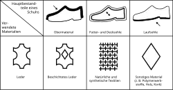 Ein Schuh besteht aus zwei Hauptteilen: Der obere Teil wird Schaft, der untere wird Boden genannt.