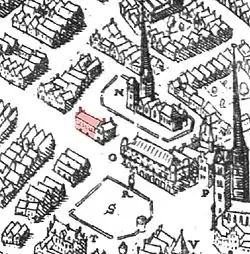 Im 14. Jahrhundert befanden sich die Schusterwerkstätten hier tatsächlich noch in einer langen Reihe von Buden, die teils von der Domus theatralis aus gezählt wurden, dem an der Obern-, Ecke Sögestraße stehenden alten Rathaus, teils vom Pr(a)etorium aus, womit entweder der Bischofspalast am Domshof gemeint sein kann, oder eine halboffene Gerichtsstätte im Westen des heutigen Rathauses, oder das von Dilich in seiner Rekonstruktion für das 13. Jahrhundert eingezeichnete Gebäude auf dem Markt.