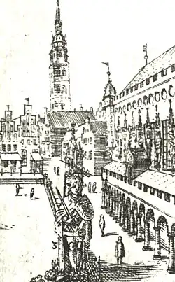 In diesen Rahmen fällt auch der Abriss des Schuhbuden-Gebäudes im Jahr 1614, um der neu zu errichtenden Börse Platz zu machen. Zunächst wurde ein Weinkeller angelegt. Der Bau des eigentlichen Börsengebäudes verzögerte sich durch die kriegerischen Zeiten (Dreißigjähriger Krieg, sowie Erster und Zweiter Bremisch-Schwedischer Krieg) bis 1682.