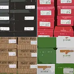 Beispiele: Schuhschachteln verschiedener Hersteller in unterschiedlichen Designs und Farben.