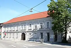 Das Schul- und Gemeindehaus der Gemeinde Kleinmünchen wurde im späten 19. Jahrhundert errichtet und in der Folge mehrfach umgebaut und erweitert. Die Umbauten und Erweiterungen wurden im Laufe des späten 19. Jahrhunderts bzw. im 20. Jahrhundert durchgeführt. Die Fassade wurde 1909 von Maurermeister Ferdinand Bachbaur gestaltet. Die dahinterliegende, ehemalige Kleinkindbewahranstalt in der Dauphinestraße 56a entstand 1878 durch die Oberösterreichische Baugesellschaft, wobei als Bauherr Wilhelm von Löwenfeld fungierte. Der heutige Caritas-Kindergarten wurde 1903 im Bereich der ebenerdigen Seitenflügel durch Ferdinand Bachbaur aufgestockt und 1941 durch das Amt für Volkswohlfahrt unter Bauführer Karl Schimany umgebaut.