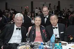 Schulen für Afrika-Gründer Peter Krämer (links) in Südafrika, 2010, mit Ban Ki-moon und Gattin und Jaka Bizilj