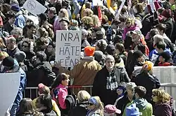 Am 24. März 2018 wurde als ein Höhepunkt der vor allem von Schülern und Studenten initiierten Proteste für schärfere Waffengesetze und gegen den Einfluss der NRA in den USA der March for our Lives (auch #march4ourlives) veranstaltet;[65] dabei waren über 700 entsprechende Aktionen in allen 50 US-Bundesstaaten[66] sowie auch in rund 40 Ländern auf allen anderen Kontinenten und damit an weltweit zusammen über 840 Orten angekündigt.[46][65] Auf der Hauptveranstaltung in Washington D.C. nahmen mehrere Hunderttausend Menschen teil.[67][68] Laut Umfragen wollte sich ein Drittel der US-Jugendlichen direkt oder indirekt an der Aktion beteiligen.[69]