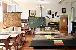 Es gibt eine kleine Sammlung mit historischen Schulbüchern, Wand- und Schautafeln, Landkarten, didaktischen Schaukästen für den Natur- und Heimatkundeunterricht, mit Musterstücken für den Handarbeitsunterricht oder historisches Arbeitsmaterial wie Schiefertafel, Griffel und Kreide.