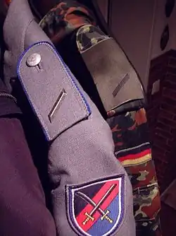 Ein weiterer Unterschied im Vergleich zu Reichswehr und Wehrmacht bestand in der Zuordnung der Waffenfarben der Rand-Paspelierung der Schulterklappen.