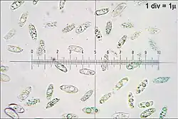 Die Sporen sind elliptisch, glatt und messen 10–16 x 4–6 Mikrometer.
