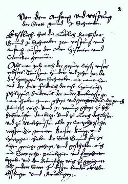- ↑ Klaus Graf: Gmünder Chroniken im 16. Jahrhundert: Texte und Untersuchungen zur Geschichtsschreibung der Reichsstadt Schwäbisch Gmünd. Einhorn-Verlag, Schwäbisch Gmünd 1984, ISBN 3-921703-53-0 (Online-Version, weitere)