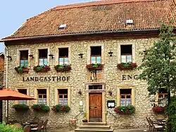 Der alte Ortskern ist noch in der regionaltypischen Struktur erhalten, mit zahlreichen fränkischen Haus-Hof-Anlagen in unterschiedlichen Ausprägungen. In der Mainzer Straße 2 war von 1891 bis 1909 die Höhere Privatlehranstalt untergebracht, die zur Vorbereitung eines Gymnasiumbesuchs diente. Ortsbildprägend ist auch das 1896 erbaute Feuerwehrhaus.