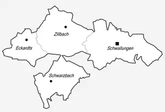 Zur Gemeinde Schwallungen gehören die Ortsteile Eckardts, Windenhof, Schwarzbach und Zillbach.