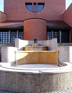 Eingangsbereich mit Wasserkaskade: Detail an der Michaelskirche, Schwanberg