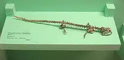 Aus dem Oberjura von Kasachstan stammt Karaurus. Von dieser Gattung sind fast vollständige Skelette überliefert, die vermuten lassen, dass die ca. 12 cm langen Tiere terrestrisch waren.[6] Nur selten blieben die winzigen, fragilen Skelette der Schwanzlurche in den Gesteinen des Mesozoikums erhalten. Da sich urzeitliche Salamanderfossilien in Zentralasien aber häufen, liegt es nahe, dass die Wurzeln der Schwanzlurche in dieser Region liegen.[7] Die ausgestorbenen, nur in Nordamerika vorkommenden Batrachosauroididae erschienen im späten Jura, ähnelten den Olmen (Proteidae) und waren wie diese wahrscheinlich aquatisch. Sie lassen sich bis zum frühen Pliozän nachweisen. In der Oberkreide trat eine den Armmolchen (Sirenidae) ähnliche Familie mit zwei Gattungen auf, Prosiren aus Texas und Ramonellus aus Israel. Wie die Armmolche waren die Tiere langgestreckt und es fehlten ihnen die Hinterbeine. Ob sie aber wirklich näher mit den Armmolchen verwandt sind, ist bisher unklar. Valdotriton aus dem späten Barremium von Spanien ist durch sechs vollständige Skelette bekannt und gehört zu den Salamanderverwandten, ohne einer rezenten Familie zugeordnet werden zu können. Anatomisch vermittelt die Gattung zwischen den Olmen und den übrigen Salamanderverwandten. In der Oberkreide erschienen zwei heute noch existierende Familien, die Aalmolche (Amphiumidae) und die Armmolche, sowie die Scapherpetontidae, die im frühen Eozän wieder verschwanden. Proamphiuma aus kreidezeitlichen Ablagerungen in Montana ist der früheste bekannte Aalmolch und Vorgänger der rezenten Gattung Amphiuma. Fossile Armmolche sind Kababisha aus Afrika, Notoerpeton aus Südamerika und die großwüchsige Gattung Habrosaurus aus Nordamerika, die bis zum frühen Paläozän überdauerte. Aus Afrika sind auch jüngere Armmolche bekannt. Seit dem mittleren Eozän lässt sich die rezente Gattung Siren in Nordamerika nachweisen und die Zwergarmmolche (Pseudobranchus) erschienen im Pliozän in Florida. Die Scapherpetontidae kamen in Nordamerika von der späten Kreide bis frühen Eozän vor. Scapherpeton und Piceoerpeton ähnelten der rezenten Salamandergattung Dicamptodon, Lisserpeton hatte einen langgestreckten Körper und reduzierte Beine. Die Riesen-Querzahnmolche (Dicamptodontidae) erschienen in Nordamerika nach dem Aussterben der Scapherpetontidae und scheinen wie ihre heutigen Vertreter mit der Redwood-Flora assoziiert zu sein.