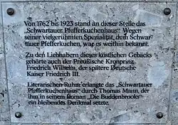 Das Schwartauer Pfefferkuchenhaus wurde von Thomas Mann in den Buddenbrooks (6. Abschnitt) literarisch verewigt: Bei einem Ausflug nach Schwartau kaufen die Buddenbrooks dort mehrere große „Düten voll Pfeffernüssen“. Bekannt wurde das Haus auch durch mehrfache Besuche des Kronprinzen Friedrich Wilhelm, des späteren Kaisers Friedrich III., u. a. 1845 mit seinem Hauslehrer Ernst Curtius, 1867 mit seiner Frau Victoria.