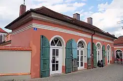 - ↑ Eugen Trapp: Der Bazar zu Stadtamhof. Zur Geschichte eines biedermeierlichen Einkaufszentrums. In: Stadt Regensburg, Untere Denkmalschutzbehörde (Hrsg.): Denkmalpflege in Regensburg. Band 14. Friedrich Pustet, Regensburg 2015, ISBN 978-3-7917-2708-0, S. 77 ff.