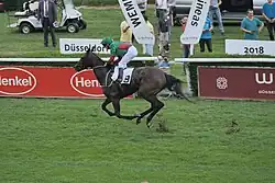 Fünftplatzierte Stute Fast Attack aus England mit Jockey Adrie de Vries kurz vor verlassen des Führrings