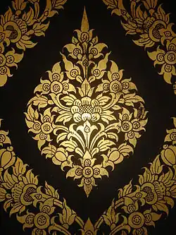 Unter den angewandten Künsten, die von den Thai seit langem betrieben werden, ist die Verzierung mit Blattgold-Zeichnungen auf schwarzem, selten auch auf rotem Lack bedeutsam, um verschiedene Objekte für den religiösen oder täglichen Gebrauch wie kleine Kästchen, Schränke, Türen oder hölzerne Paravents zu verzieren.