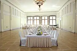 Im linken Teil wurde im oberen Geschoss ein großer Saal, der sogenannte Brudersaal eingerichtet. Der Brudersaal wurde dann mit lebensgroßen Porträts ausgestattet, die deutsche, schwedische und russische Herrscher zeigten, die als Landesherren von Estland bzw. Reval fungierten. So befanden sich dort Porträts vom römisch-deutschen Kaiser Karl V. bis zum letzten russischen Zar Nikolaus II. Außerdem war im Brudersaal auch ein Epitaph für die zehn am 11. September 1560 gefallenen Schwarzhäupter. Hierbei handelt es sich um die älteste erhaltene Stadtansicht Revals. Der Saal im Erdgeschoss heißt Dornste, was etwa heizbares Gemach bedeutet.[5] Im Haus fanden kulturellen Veranstaltungen statt, insbesondere war es Veranstaltungsort für Feste der Deutsch-Balten in Reval.