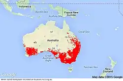 - Nesoptilotis leucotis leucotis, Küstengebiete von Queensland und New South Wales bis Victoria und den Südosten von South Australia.