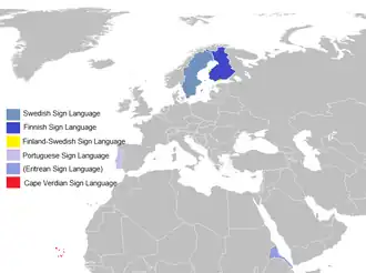 - ↑ Signed languages in the Nordic countries. In: nordics.info. 16. Februar 2022, abgerufen am 14. Mai 2024 (englisch).