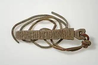 Es gibt auch norwegische Kleinfunde mit Runenbeschriftung (Eikeland-Schnalle).