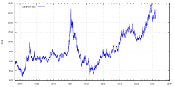 - ↑ Website der Deutschen Bundesbank, Statistiken, Zeitreihen, Historische DM-Devisenkurse der Frankfurter Börse, abgerufen am 16. Mai 2010 ( vom 8. März 2012 im Internet Archive)