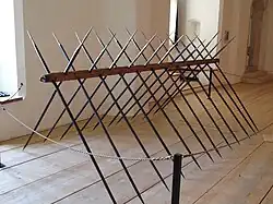 Als Schweinsfeder bezeichnet man – in Anlehnung an den Jagdspieß „Saufeder“ – einen Spieß des späten 17. Jahrhunderts. In den damaligen Türkenkriegen verzichtete man bereits häufig auf die nur mit einem Spieß bewaffneten Pikeniere. Es war praktischer, die Musketiere selbst mit einer Abwehrwaffe gegen Kavallerieattacken auszurüsten. So entstand diese etwa 1,80 m lange Waffe. Obwohl die Musketen leichter geworden waren, brachte man seitlich an der Schweinsfeder einen Haken zum Einlegen der Feuerwaffen an. Außerdem wurden von der Armee etwa 4 m lange Balken mitgeführt, in welchen sich seitlich versetzte Löcher befanden. In diese Löcher wurden – in einem Winkel von 45 Grad und abwechselnd von links und von rechts – 20 oder mehr Schweinsfedern gesteckt. Da die vordere Hälfte des Schaftes dicker war, konnten sie nicht aus dem Balken herausrutschen. Auf diese Weise konnte relativ schnell und einfach ein Spanischer Reiter zusammengesetzt werden, der ein perfektes Hindernis für den Einsatz gegen die Kavallerie des Feindes bot.