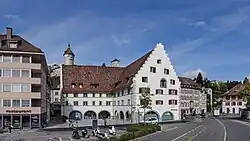 1529 wurde der Schweizerhof erbaut. Besonders der Dachstuhl wurde mit grossem handwerklichem Aufwand in Zapfbauweise erstellt. In Fachkreisen gilt er als aussergewöhnlich und hat Seltenheitswert. Der weiträumige Dachstock konnte jedoch nie für Lagerzwecke genutzt werden. Die ganze Parzelle mit Garten umfasst eine Fläche von rund 1000 Quadratmetern. Der vom Rhein abgewandte Hausteil bildet einen Teil der „Unterstadt“. Am Schweizerhof wurden während 300 Jahren kaum bauliche Änderungen vorgenommen. An der Ostfassade waren bis in die 1950er Jahre noch Reste eines Freskos zu sehen.