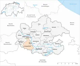 - ↑ Ausschnitt Landeskarte der Schweiz 1 : 25'000. Blatt 1074 Bischofszell, 1990