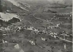 In den 1930er-Jahren verschwanden die bisherigen Haupterwerbszweige Weberei und Stickerei aufgrund der Krisen beinahe vollständig. Seither ist die Gemeinde von Vieh- und Milchwirtschaft geprägt. In Schwellbrunn findet deswegen jährlich die grösste Viehschau des Kantons statt.[11] Da der Dorfkern von Schwellbrunn bis ins 20. Jahrhundert weitgehend unverändert geblieben ist, wurde dieser als Ortsbild von nationaler Bedeutung unter Schutz gestellt. Dank seiner ruhigen Lage wurde die Gemeinde im letzten Viertel des 20. Jahrhunderts als Wohnort sehr geschätzt; seit Beginn des 21. Jahrhunderts hat sich allerdings die Zunahme an Bewohnerinnen und Bewohnern gemässigt.[9]