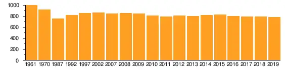 | Jahr | 1961 | 1970 | 1987 | 1992 | 1997 | 2002 | 2007 | 2008 | 2009 | 2010 | 2011 |
