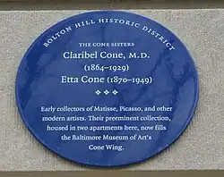 Blue Plaque für die Cone Sisters in Bolton Hill, Baltimore