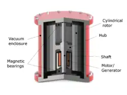 Mögliches Einsatzgebiet sind Orte, an denen elektrische Energie gespeichert und wieder abgegeben werden muss, um beispielsweise Schwankungen im Sekundenbereich bei Windkraft- und Solaranlagen auszugleichen. Diese Speicheranlagen bestehen aus einzelnen Schwungradspeichern in modularem Aufbau. Pro Schwungrad können Spitzenleistungen um die 150 kW aufgenommen oder abgegeben werden. Durch Kombinationen von mehreren solcher Schwungradspeicher, welche einzeln in im Erdreich vergrabenen Vakuumtanks untergebracht sind, können so Gesamtleistungen bis zu einigen 10 MW erzielt werden. Die elektrische Anbindung der mit Niederspannung betriebenen Motoren erfolgt über einen Gleichstromzwischenkreis, und die Stromrichteranlagen sind vergleichbar mit Anlagen, wie sie auch bei Hochspannungs-Gleichstrom-Übertragungen Anwendung finden.[2]