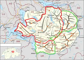 - Fronalpstock-Kette im Süden, grenzend an den Kanton Uri