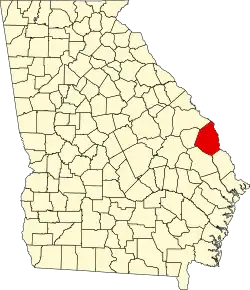 Das County liegt im äußersten Osten von Georgia, an der Grenze zu South Carolina und hat eine Fläche von 1698 Quadratkilometern, wovon 18 Quadratkilometer Wasseroberfläche sind und grenzt im Uhrzeigersinn an folgende Countys: Effingham County, Bulloch County, Jenkins County und Burke County.