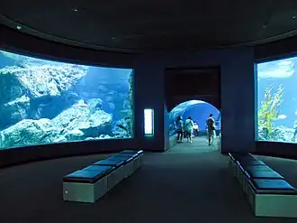In der Abteilung der tropischen Ozeane befindet sich ein acht Meter hohes Aquarium, das Korallen, Seeanemonen, Seeigel und verschiedene exotische Fischarten enthält, ein kleines Korallenriff wurde nachgebaut. Eine besonders spektakuläre Einrichtung ist ein aus klarem Acryl hergestellter Unterwassertunnel, der einen 270-Grad Rundblick in die Unterwasserwelt mit Haien und Rochen ermöglicht. Ein nachgebildetes Schiffswrack wurde als Versteckmöglichkeit eingefügt. Spezielle Becken sind mit Seepferdchen, Tintenfischen und Quallen besetzt. Diverse Krebstierarten und Meeresschnecken bewohnen Schaubecken gemeinsam mit denjenigen Fischen, mit denen sie auch im Freiwasser ihren Lebensraum teilen. Afrikanische Pinguine leben in einer offenen Anlage, Arten der Antarktis werden in einem mit künstlichem Eis und Schnee ausgestatteten Pinguinarium gehalten.[3] Unter den ausgestellten Tieren befindet sich auch eine begrenzte Anzahl an Amphibien. Zu den wenigen Säugetieren im Aquarium zählen einige Otter.