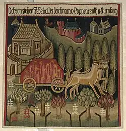 Nach seinem Tod soll ein Ochsengespann ohne Lenker den Leichnam oder dessen Knochen[1] von der Kirche St. Peter und Paul in Poppenreuth (heute ein Gemeindeteil der Stadt Fürth) zu der damaligen Peterskapelle in Nürnberg gebracht haben, wo er beigesetzt wurde. Seine Verehrung als Heiliger ist dort ab etwa 1070 belegt. Erste belegbare deutschsprachige Legendenerzählungen über ihn stammen aus dem 14. Jahrhundert.[2]