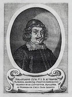 Nach einem Studium der Rechtswissenschaften an den Universitäten in Straßburg (1625), Tübingen (1627), Altdorf (1629), Ingolstadt (1630) und Basel (1630) promovierte Sebastian Otto am 29. März 1631 zum Doktor beider Rechte. Er wurde Rats-Advokat (Syndikus) in Ulm und 1644 als Komitialgesandter an den kaiserlichen Hof in Innsbruck und Wien bestellt. Anschließend war er Gesandter der Stadt Ulm bei den Friedensverhandlungen des Westfälischen Friedens in Münster und Osnabrück. Außerdem vertrat er die Evangelischen in Biberach. Nach dem Friedensschluss nahm er 1649/1650 am Nürnberger Exekutionstag teil,[8] dessen Aufgabe die Klärung von Fragen war, die bei den Friedensverhandlungen in Münster/Osnabrück offen geblieben waren. 1662/1663 nahm er am Reichstag in Regensburg teil.